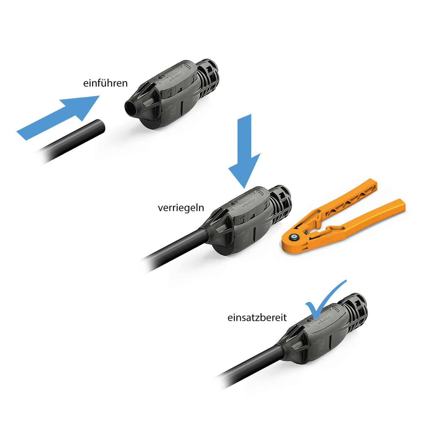 Das im Set enthaltene Entriegelungswerkzeug erlaubt das fachgerechte Lösen bereits gesteckter SOLARLOK 2.0 Verbinder, ohne Gehäuse oder Kontakte zu beschädigen. Dies ist besonders wichtig bei Wartung, Fehlersuche oder Umbauten, bei denen Steckverbinder wiederverwendet werden sollen. Unsachgemäßes Öffnen mit ungeeignetem Werkzeug wird so zuverlässig vermieden.