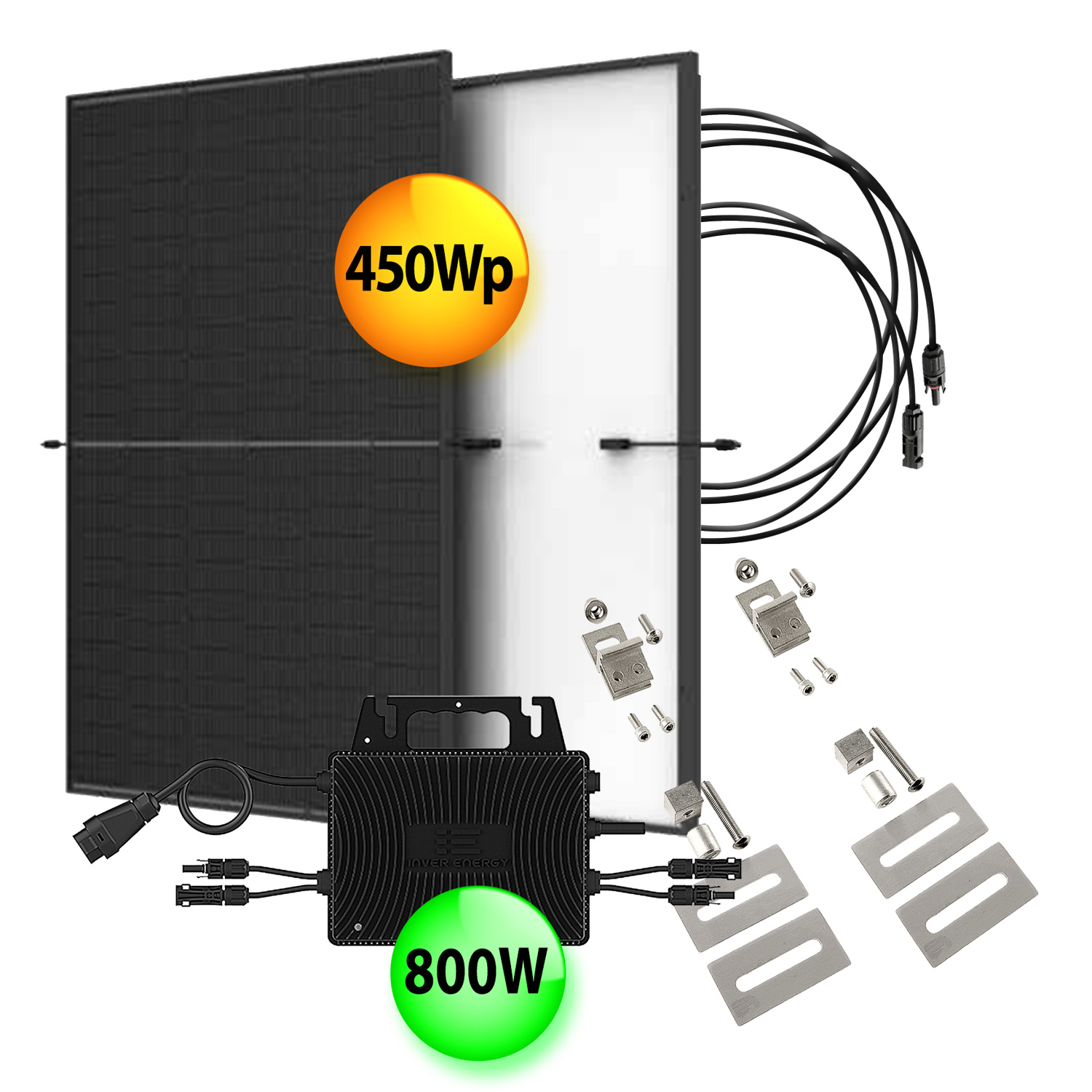 plenti SOLAR Zaun Solarzaun Anlage 900Wp/800W 2 Module Wechselrichter Stabgitterzaun Montagesystem