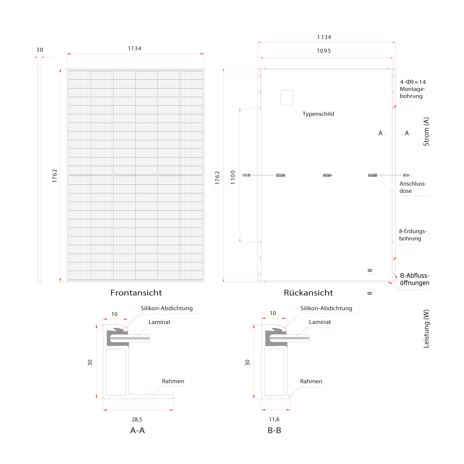 Module: 2x Trina Solar Vertex S+ 450W, 22,5 % Wirkungsgrad, 1762x1134x30mm, 21 kg