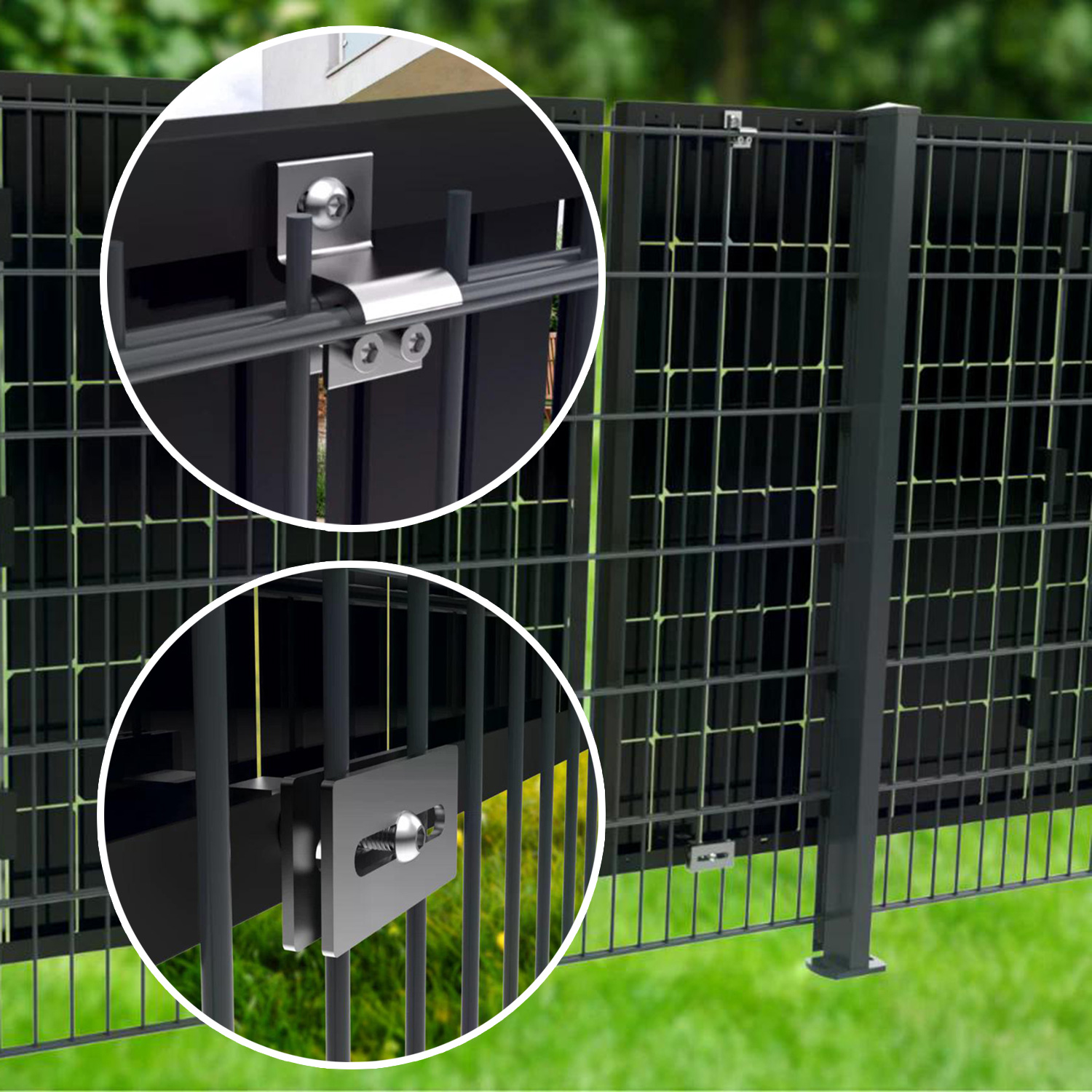 Zaunhalterung: V2A Edelstahl, passend für Doppelstabmatten 6/5/6 und 8/6/8